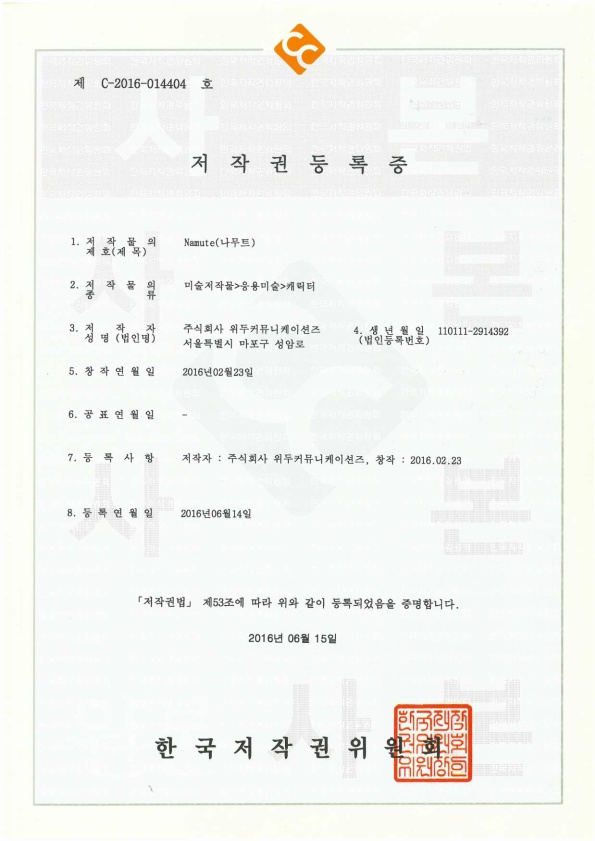 [한국/저작권] 나무트 페이지 정보 작성자 WeDu 댓글 0건 조회 6,526회 작성일 19-05-30 19:08 본문 2016-06-14 저작권 C-2016-014404 나무트 / 미술저작물>응용미술>캐릭터 List Previous[한국/저작권] 리안 19.05.30 Next[한국/저작권] 길리 19.05.30